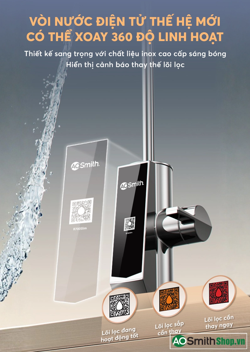 Vòi nước điện tử mới Vòi nước hiển thị tình trạng lõi lọc trên thân, mang lại sự tiện nghi và nâng cao không gian bếp. . |