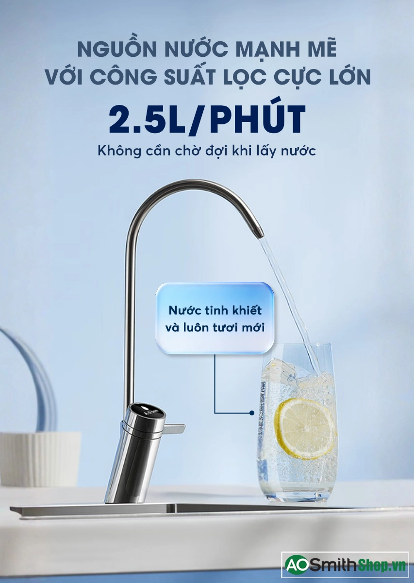 Máy lọc nước có công suất lớn, lên đến 2500 ml/phút, đảm bảo nguồn nước luôn tươi mới cho gia đình bạn.